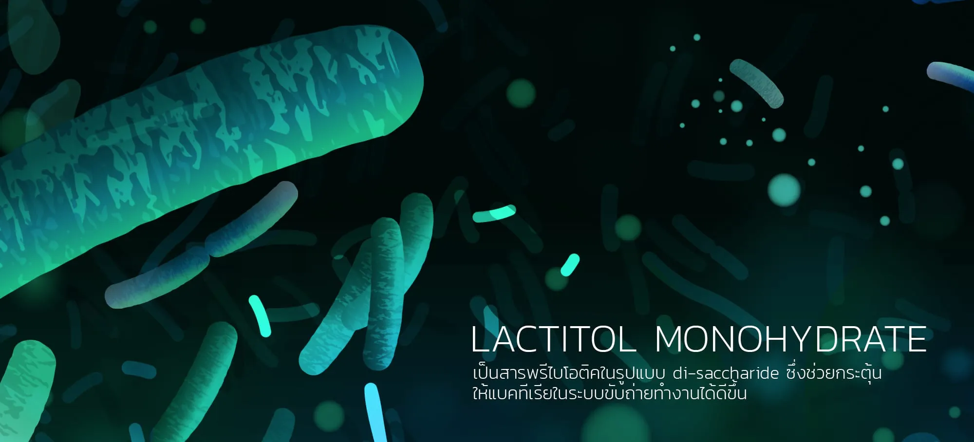 - ใยอาหาร 4 ชนิด ได้แก่ อินนูลิน 90%, โพลีเดกโตรส 90%, ฟรุคโตโอลิโกแซคคาไรด์ 95% และ พาร์เชียลลี่ไฮโดรไลซด์กัวร์กัม