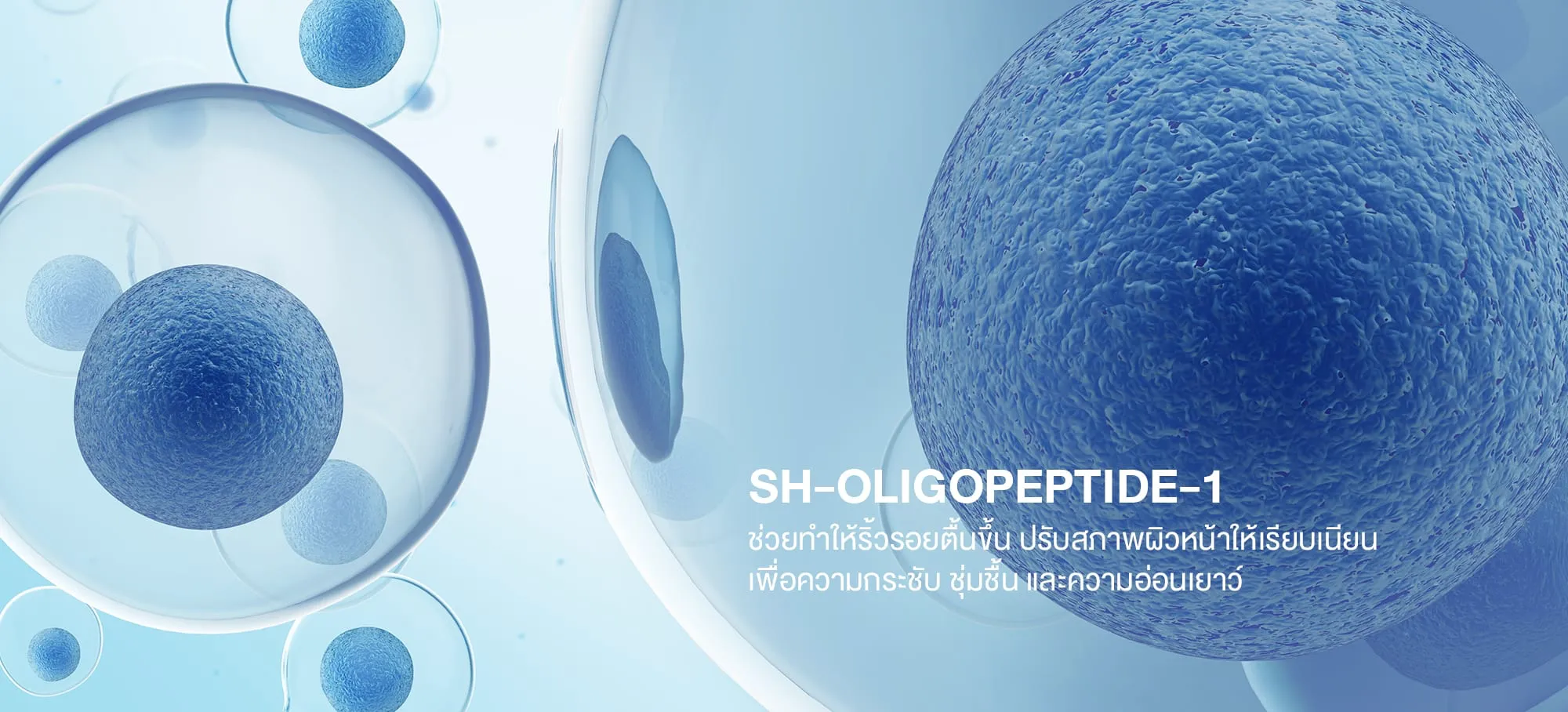 Sh-Oligopeptide-1 ช่วยทำให้ริ้วรอยตื้นขึ้น ปรับสภาพผิวหน้าให้เรียบเนียน เพื่อความกระชับ ชุ่มชื้น และความอ่อนเยาว์