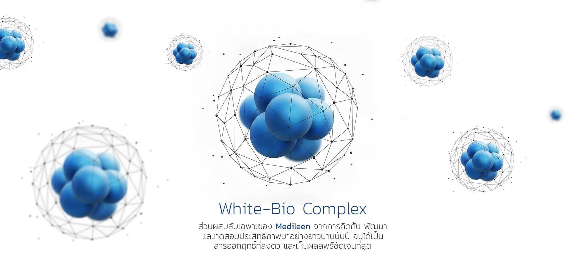White-Bio Complex ส่วนผสมลับเฉพาะจากการคิดค้น พัฒนา และทดสอบประสิทธิภาพมาอย่างยาวนานนับปีของ Medileen จนได้เป็นสารออกฤทธิ์ที่ลงตัวและให้ผลลัพธ์ที่ดี ผสมผสานพืชธรรมชาติและสารที่ช่วยฟื้นบำรุงให้ผิวกระจ่างใสถึง 11 ชนิด